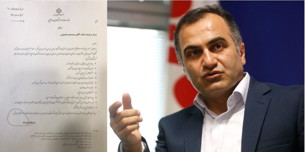 سید مجید بختیاری، مدیرعامل جدید بیمه ایران شد وزیر امور اقتصادی و دارایی در حکمی با استناد به مصوبه مجمع عمومی شرکت سهامی بیمه ایران، «سید مجید بختیاری» را به عنوان “عضو هیات مدیره و مدیرعامل جدید بیمه ایران” منصوب کرد. در حکم دکتر دژپسند برای مدیرعامل جدید بیمه ایران که روز 1 بهمن 99